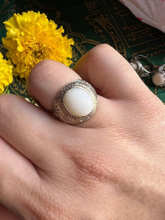 Coconut Pearl Ring - Cincin Buntat Kelapa - Crystal Feng Shui Jade Ring Stone